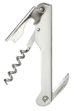 This waiter's corkscrew with straight blade is the traditional waiter's key that allows for cleanly cutting the foil, and smoothly removing the cork. It is made in Italy and nickel plated for simplicity in design leading to a classic appearance. Only 4 5/16" long yet still has an area for your custom imprint.